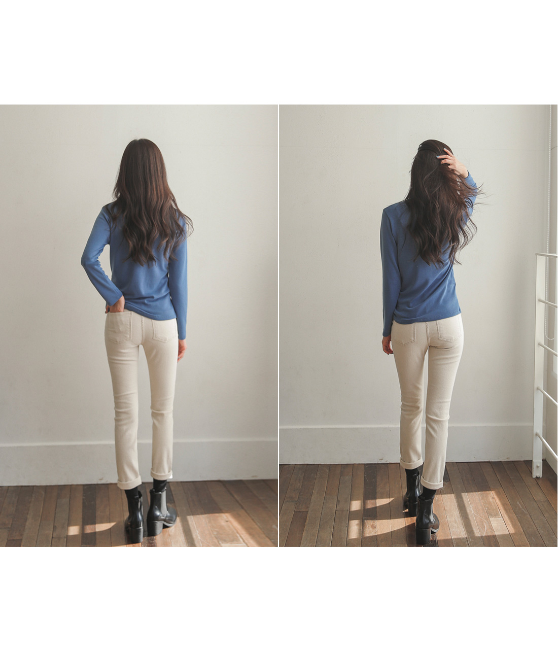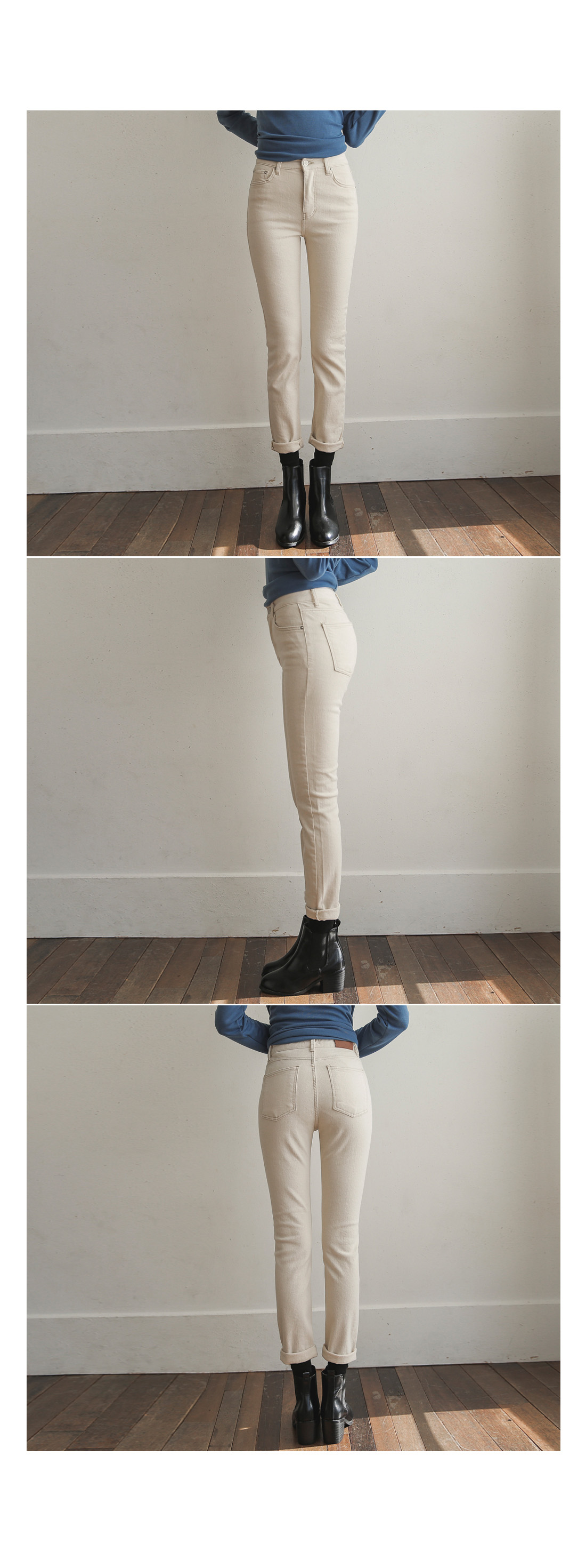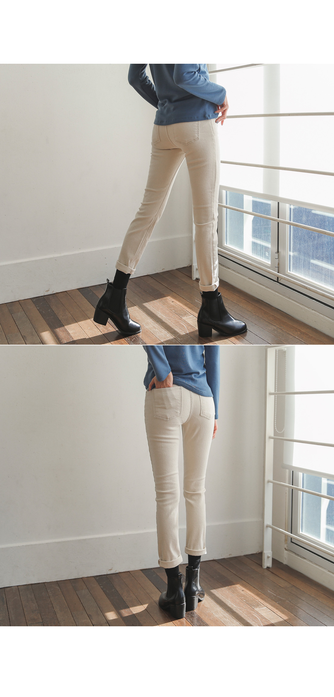 부드러운 기모안감이 있어 따뜻하고 편하게 입기 좋구요 캐주얼부터 여성스러운 스타일까지 다 잘 어울리는 팬츠에요!