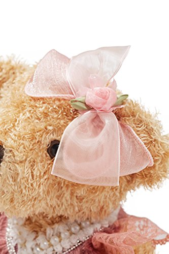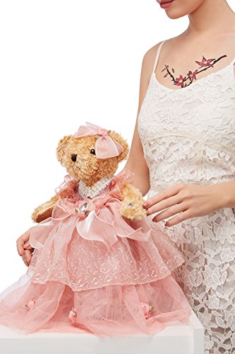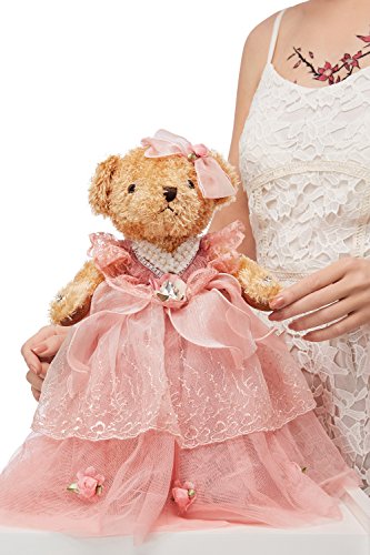 Bride Teddy Bear in Maxi Dress Wedding Stuffed Animal Plush Toy 12" (light brown, cherry blossom pink)