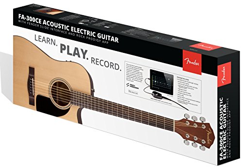 Studio : Fender Acoustic Guitars Publisher : Fender Acoustic Guitars Binding : Electronics Product Description Fender's FA-300CE Acoustic-Electric Pack gives you everything you need to start playing right now, and the included Fender SLIDE instrument interface gives you everything you need to connect the guitar to your mobile device or computer for personal practice, learning and digital recording. This acoustic guitar delivers warm tone, with a spruce top, mahogany back and sides, convenient cutaway and Fishman Isys III pickup/preamp system with built-in tuner. Its bound mahogany neck has a 20-fret rosewood fingerboard and vintage-style large Fender headstock. Elegant touches include a pearloid rosette, black pick guard and rosewood bridge with compensated saddle and abalone-dot black pins. Plug it into the SLIDE interface, which comes with cable and software (AmpliTube, Rock Prodigy), and start your new musical career now. 0