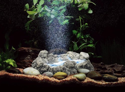 The Ario Geyser Kit is designed specifically to enhance the beautiful effect of the Ario Color bubbles. The geyser is made of non toxic resin and is hand painted for a unique and natural look. Blue bubbles flow from the top of the geyser. The large kit comes with an Ario Blue Color 4 for tanks up to 80 gallons and 20 inches deep.Feature