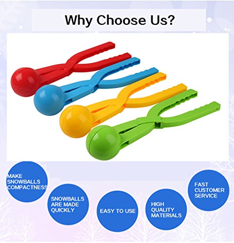 These durable snowball makers are easy to use and creates lots of fun for kids to play with snow. But it's easy enough for all ages to use. You can literally punch out dozens of perfect snowballs in seconds. No more wet glove - No more cold hands. These snowball makers are made of nice heavy duty plastic, you don't worry about breaking during the middle of a snow ball hurling. A great Christmas gift for kids. This is an absolutely fantastic snow toy. Its bright color makes it very easy to find in the snow.