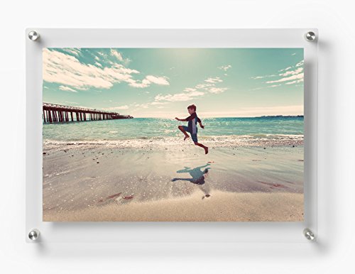 Float your artwork and posters off the wall while fully enclosing your art in between two panels of acrylic. Ideal for 16x20" images. When you want to change out your display, just unscrew the caps on the hardware and lift off the acrylic.Feature