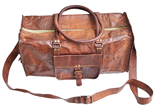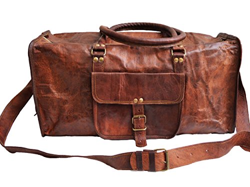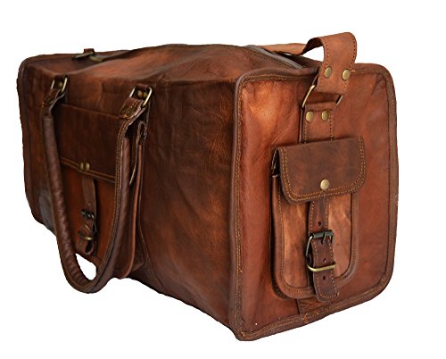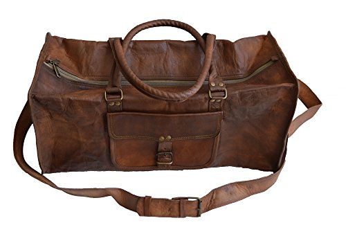 -. Brand : El Cuero -. Color : Brown -. Department : mens -. EAN : 6317295143225 -. Feature : Made with 100% genuine full grain naturally tanned goat leather. / Has inside canvas lining for durability and long life. Has an adjustable shoulder to fit people of all sizes. / Has a main 20" compartment that can easily accommodate things required for a long weekend. / Has a front pocket to keep toiletries or ipad/tabelt. Has two pockets on either side end to keep small things like charger / change etc. / Dimensions : 20" X 9" X 10" (length, width, height) , shoulder drop 25" (approx) -. Model : 20spsd -. MPN : 20SPSD -. PartNumber : 20SPSD -. ProductGroup : Apparel -. ProductTypeName : LAGE -. Size : 20" -. Title : Genuine Leather Mens Sports Duffel Travel Lage Weekend Vintage Carry on Bag