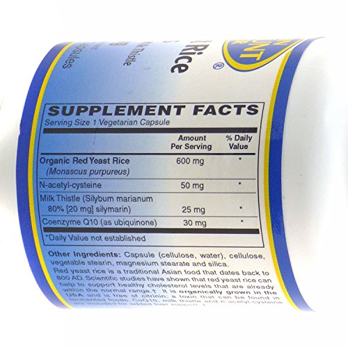 Studio : Vitamin Discount Center Publisher : Vitamin Discount Center Product Description Red yeast rice is a traditional Asian food that dates back to 800 AD. Scientific studies have shown that red yeast rice can help to support healthy cholesterol levels that are already within the normal range. It is organically grown in the USA and is free of citrinin, a toxin that can found in fermented foods. As a dietary supplement, adults take one (1) capsule, twice (2) daily with meals, or as directed by a health care professional. Store in a cool, dry place and away from direct light. These statements have not been evaluated by the Food and Drug Administration. This product is not intended to diagnose, treat, cure, or prevent any disease. 0