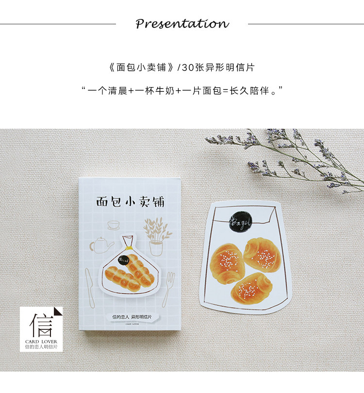 和风日系面包小卖铺异形明信片卡片创意贺卡生日卡片