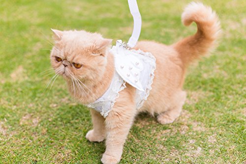 -. Feature : ハーネスサイズ:胸回り約38~40センチ(3~4キロ程度の猫ちゃん用) ※猫種にもよります。 / リードサイズ:幅2cm・長さ130cm  背中側にマジックテープと金具あり。 / ふわふわ優しいキルティング素材とレース。 当然リードは取り外しが可能。 / かわいい天使の羽根にはビーズ付 / 【重量】ハーネス+リード 75g    中国製