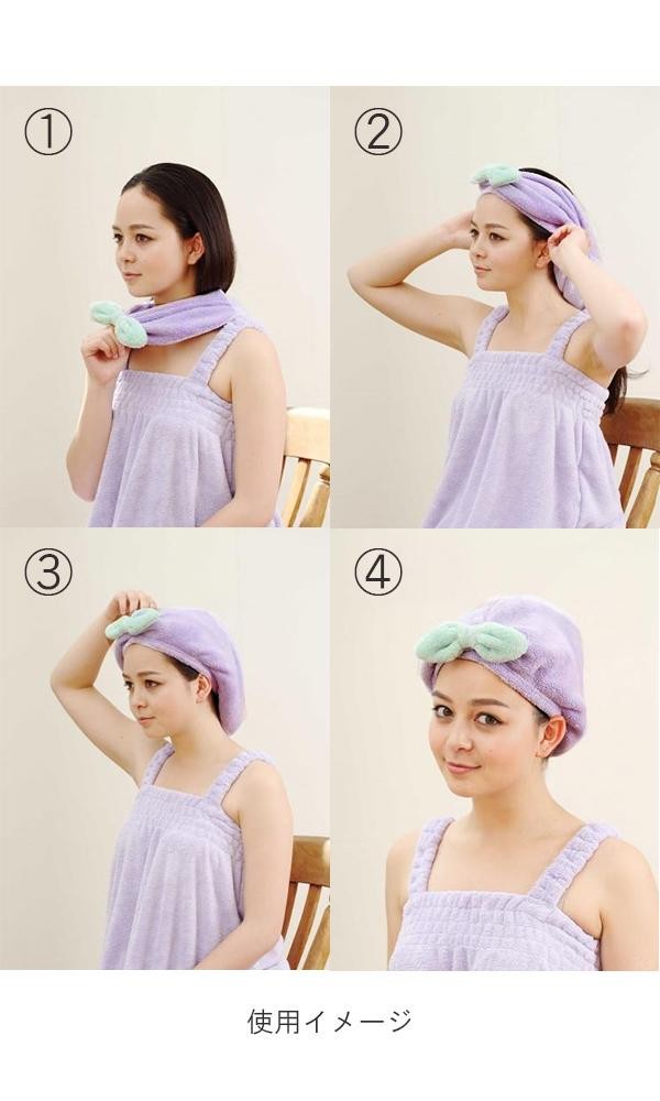 吸水性抜群のマイクロファイバー製の吸水ヘアターバン。長い髪もすっぽり包み、髪の水分をやさしく速く吸水します。