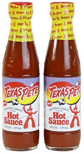 DOUBLE THE TANG: Pack of 2, 6 fl oz glass bottle of Texas Pete Sautéed Garlic Flavored Hot Sauce