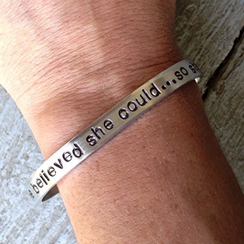 -. Title : 0.25 x 6 - She believed she could...so she did. Handmade aluminum cuff bracelet
