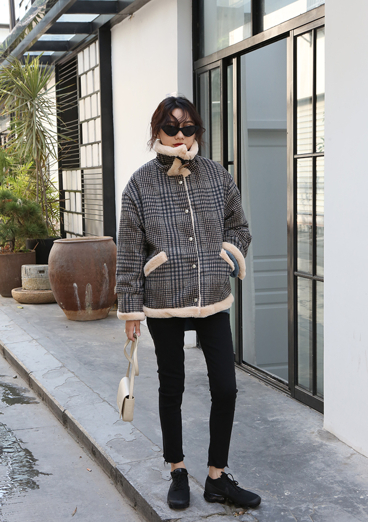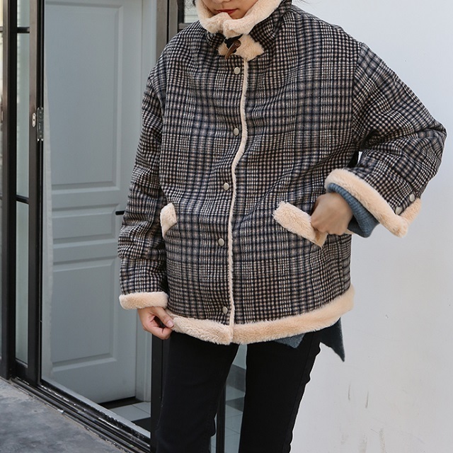 ハイネックデザインで暖かさをキープしてくれる、ふわもこジャケットです。