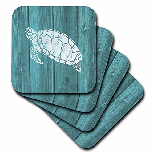 3dRose Turtle Stencil in White over Teal Weatherboard- not real wood - Soft Coasters, set of 8 (cst_220428_2)