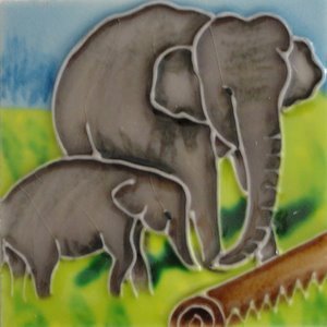 Asian Elephant Ceramic Wall Art Tile 4"x4"