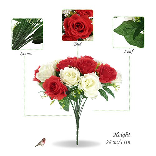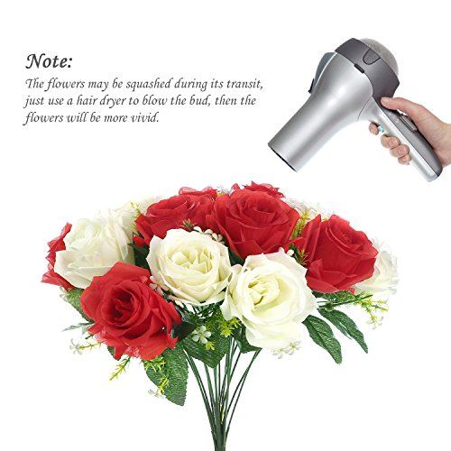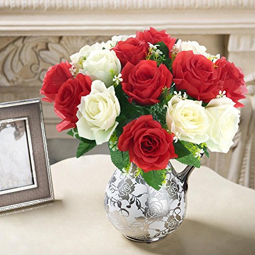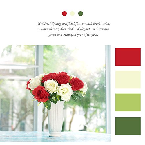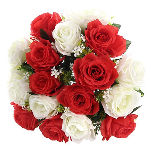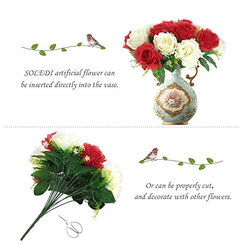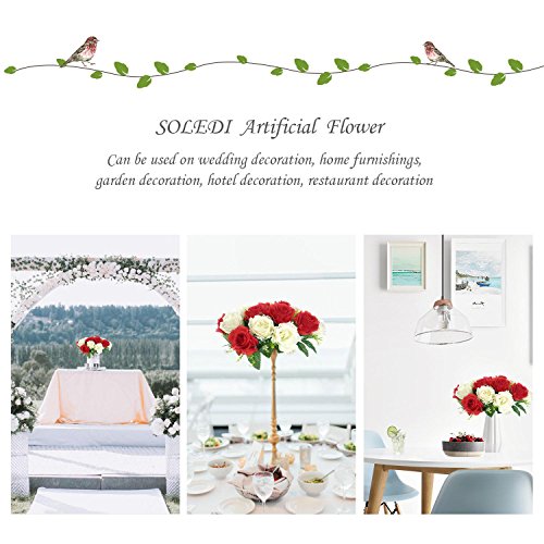 SOLEDI Artificial Flowers 18 Heads Mix Color Simulation Roses for Wedding Home Decor (White+Red)