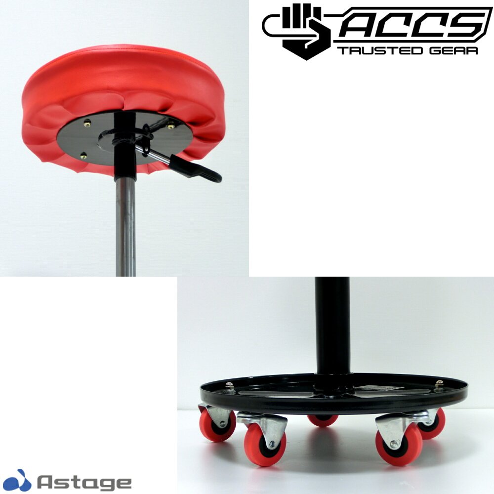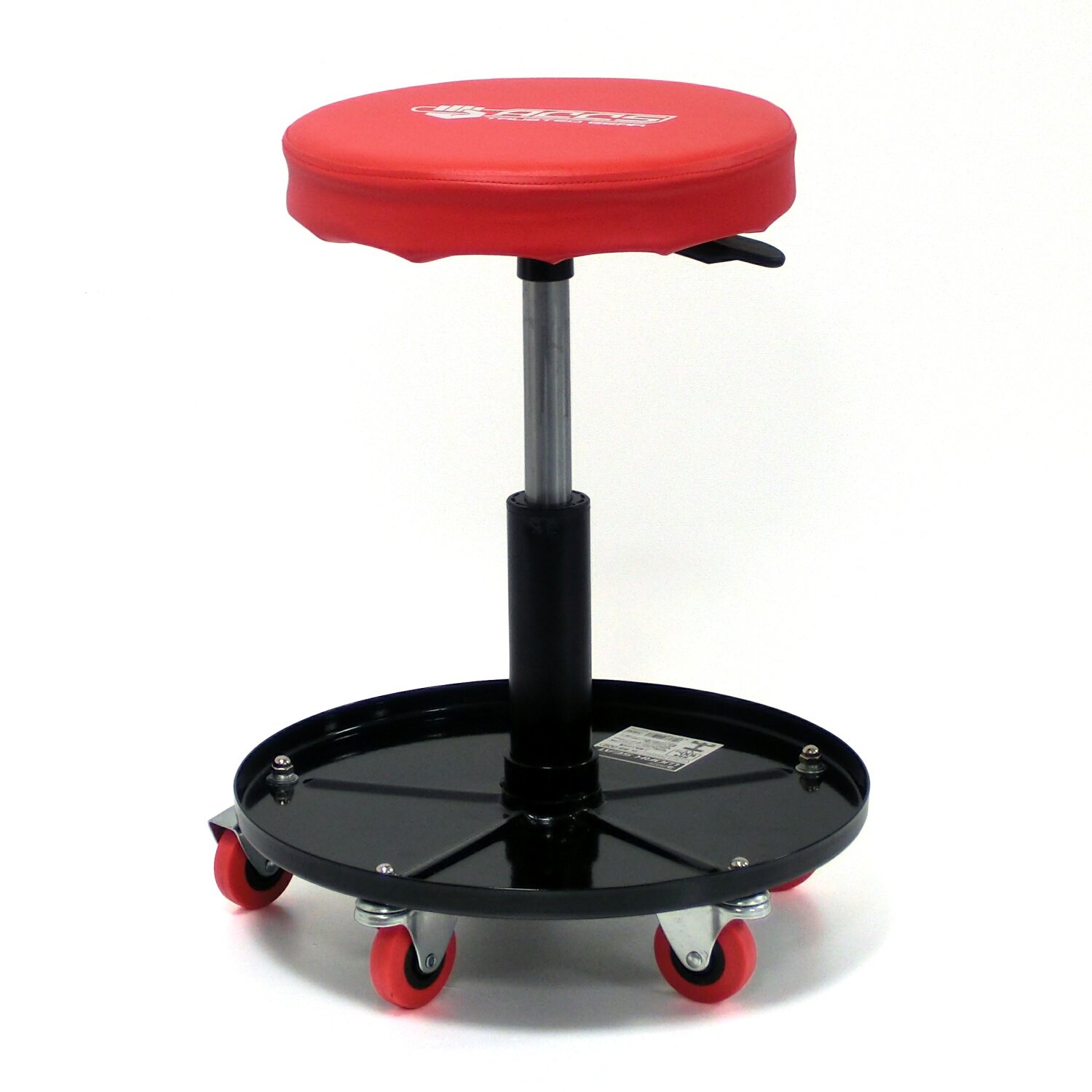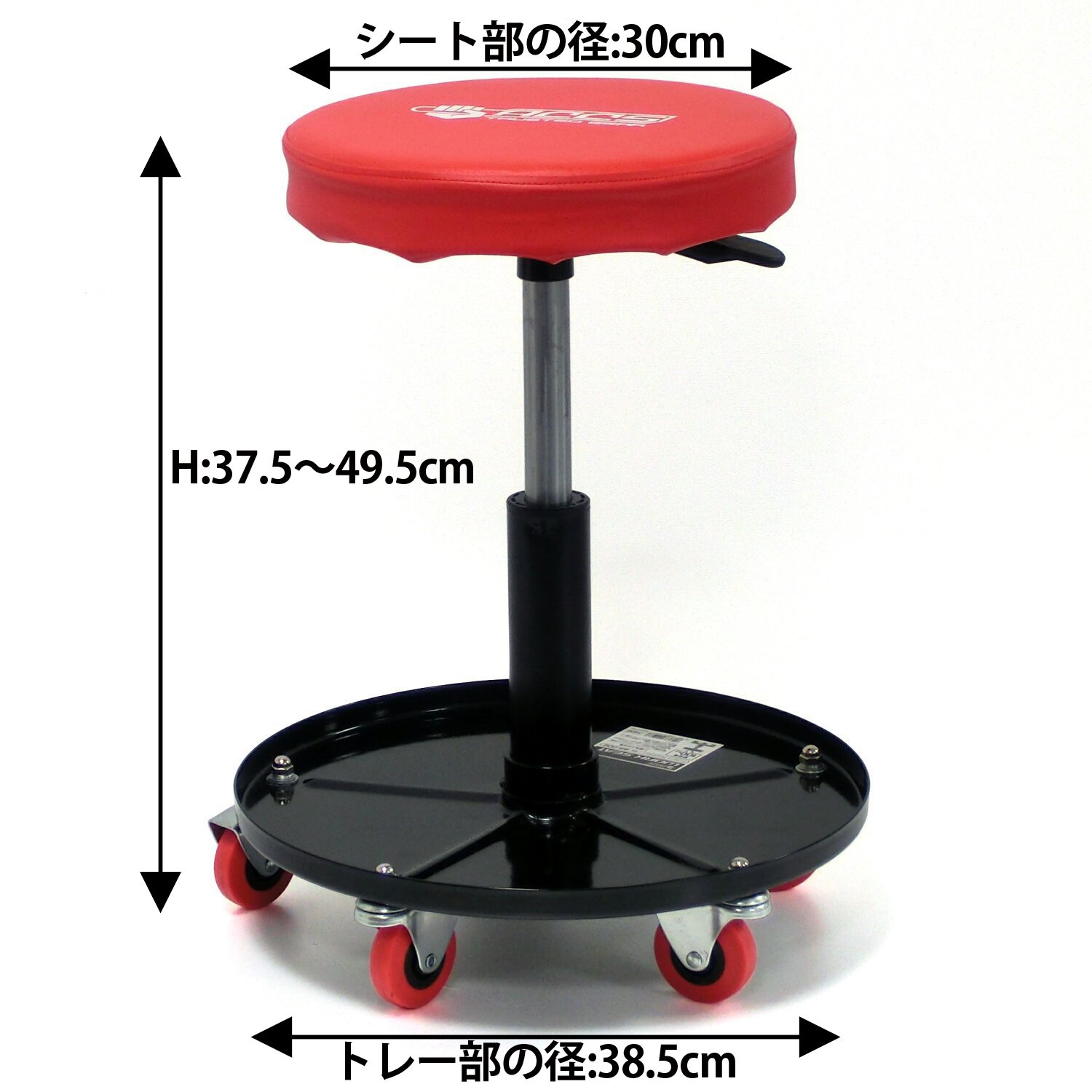 The seat height can be adjusted by raising the lever! It is a work chair with casters that is convenient for repair and maintenance work.