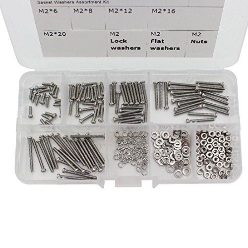 Raogoodcx 295-Pieces M2 Pan Head Phillips Stainless Steel Screws Bolts Nuts Lock and Flat Gasket Washers Assortment Kit