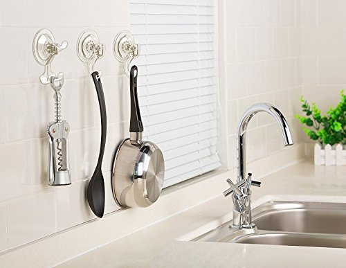 - High Quality: Powerful home storage kitchen hooks 3 Pack are made of high strength PET Material, durable, waterproof. Suction cup hooks surface is rustless, moisture proof, better than other suction hooks.