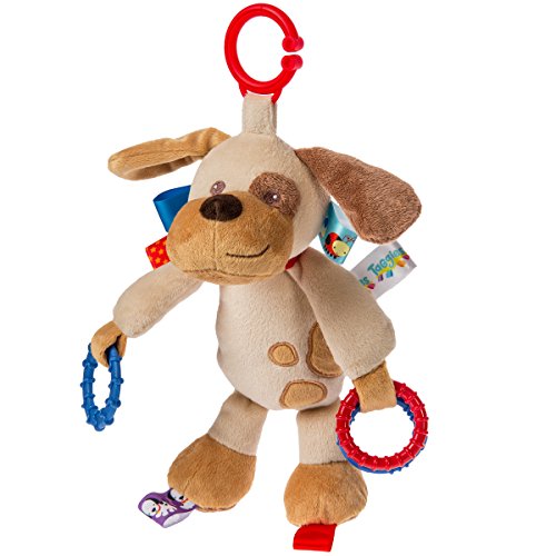 - Adorned with interactive and soothing looped tags babies love to explore; give the body a good squeeze and dog lets out a squeak that'll make baby smile