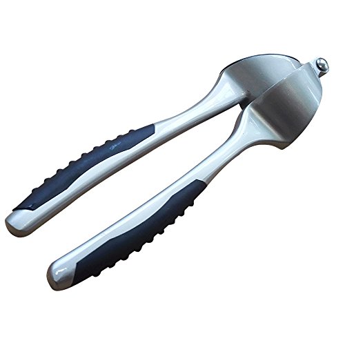 - Garlic press is made from stainless steel, light and strong, with non-slip handle make you more comfortable to use.Every part is very strong, solid, Handle feel very comfortable