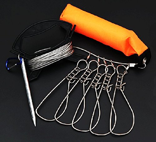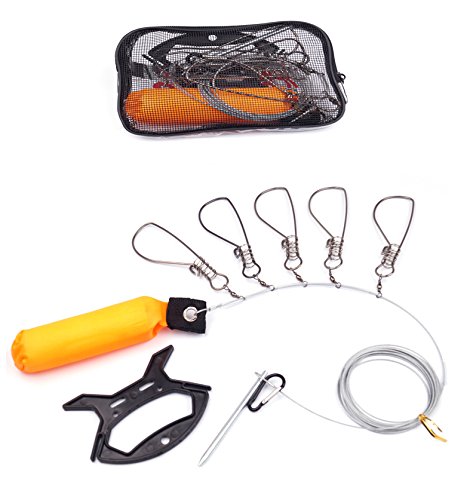 -. Feature : ワンタッチ式フック5本入り。140mmの大き目のフックは幅広い魚種に対応し、しっかりと魚の口に取り付けられます。 / ワイヤーは余裕の全長10m!高い堤防(磯)でも利用可能で、様々なロケーションに対応できます。 / •フック、ワイヤー共にステンレス製。ワイヤーはPVCコート済み。丈夫で柔軟性があり錆にも強いため、安心してご使用いただけます。 / • 便利な収納ポーチ(裏面網目加工)付き。透明な収納ポーチは19cm×15cm×4cmの大きさで、ストリンガー一式を全て収納できます。 / •ワイヤー収納ホルダーをサービスで追加した安心の5点セット(フック・フローター・10mワイヤー・収納ポーチ・ワイヤー収納ホルダー)