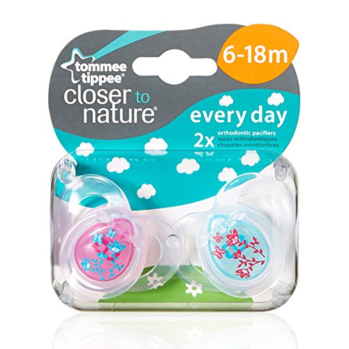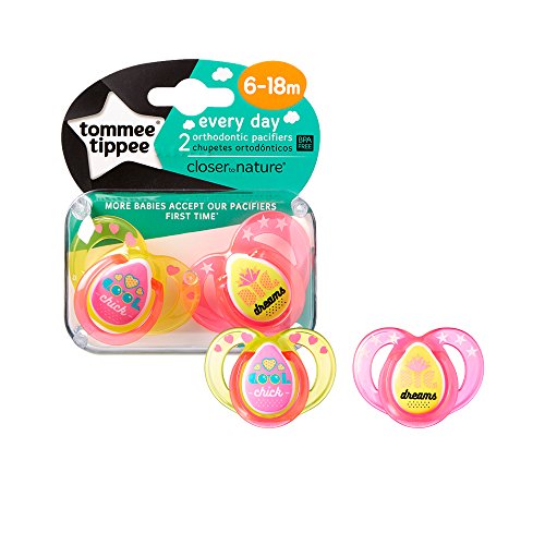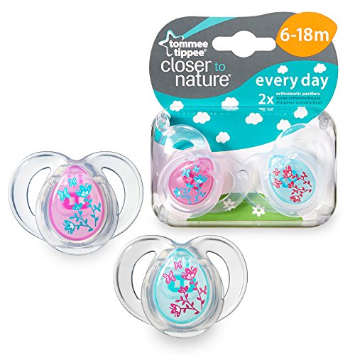 Tommee Tippee Closer To Nature Everyday Pacifier, Pink, 6-18 Months, 2 Count (Colors will vary)
