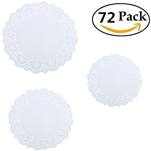 Package included: 72 pieces 6.5 inch, 8.5 inch, 10.5 inch lace doily, 24 pieces of each size