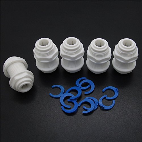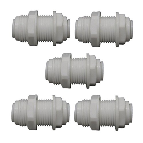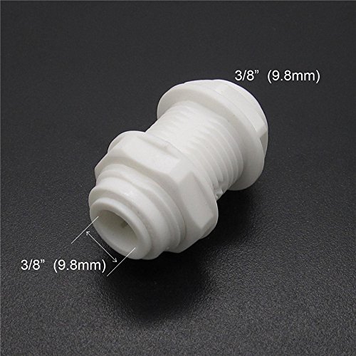 White Fittings Bulkhead Connector 3/8" Tube Quick connect for RO water Pack of 5