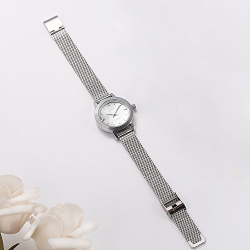 ElEGANT DESIGN: The silver tone mesh bracelet and round analogue dial looks very elegant and clear, it will goes great with any style of clothes and suitable for any occasions.