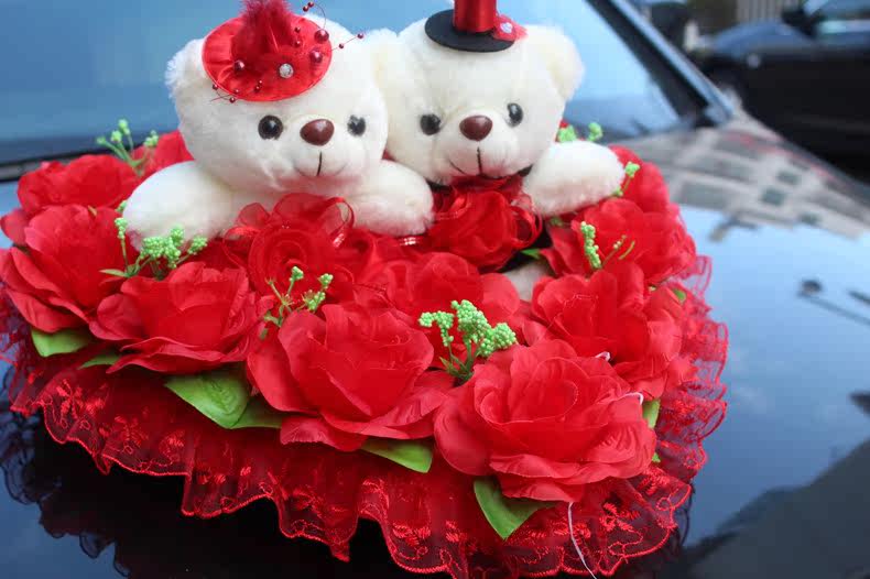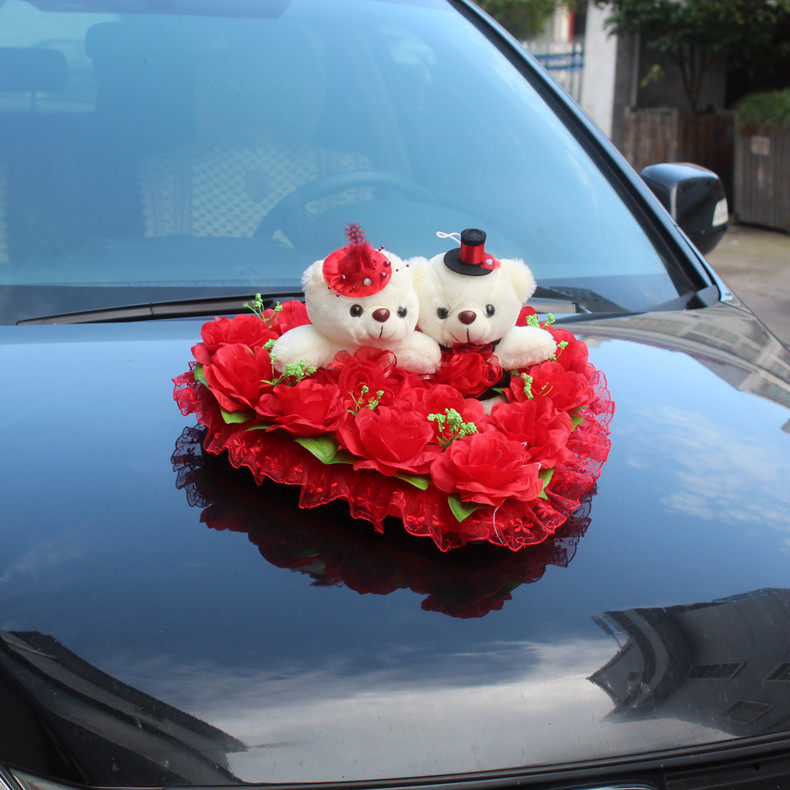 2 sets price is the price Name: Bear wedding car front Weight: 500g Dimensions: diameter of about 40cm Style: Korean Description: The wedding car decoration decorative front