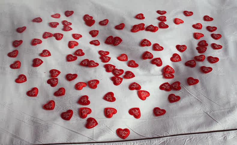 Name: Queen of hearts bed spread Weight: 8 g Size: about 2cm Packing: 50 / bag Material: pp cotton Description: festive supplies, three-dimensional hearts (outside is cloth, the middle is a thin sponge) pressure bed, bed spread, married festive decorations