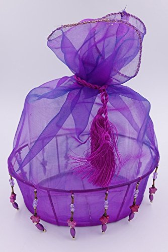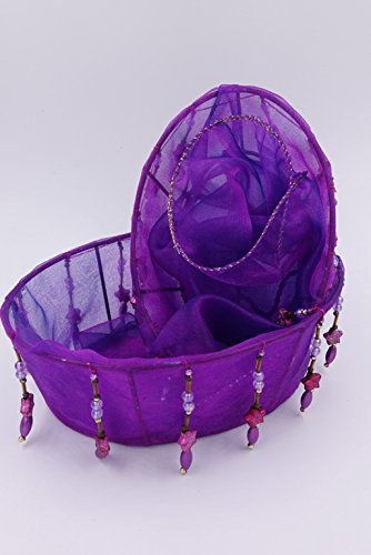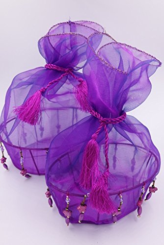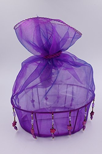 Nonagon 2 Violet Decorative Oval silk glass gift basket with beads and tassels for Christmas, (size 5.2x7.2 and 4x6 inches)