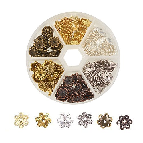 - 1 Box 6-Color 6-Petal Tibetan Style Alloy Flower Bead Caps, Cadmium Free & Lead Free, Mixed Color