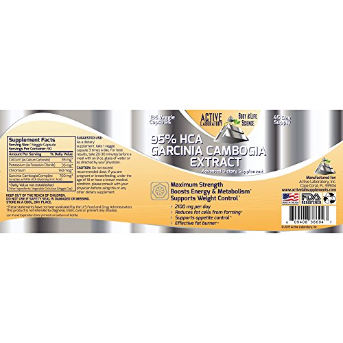 -. Title : Best Garcinia Cambogia Extract 95% HCA - 2000mg - 45 Day Supply - Most Effective Natural Weight Loss Supplement - Burn Fat - Carb Blocker - 100% Guaranteed By Active Laboratory