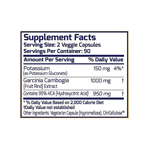 -. Feature : MAXIMUM POTENCY: 95% HCA is the highest potency available. Give yourself the best chance of losing weight and getting your energy back. / CONTAINS ZERO FILLERS: We never add fillers or ingredients just for marketing purposes, a problem that is common with other products found on Amazon. / LIFTS MOOD AND SUPPRESSES HUNGER: Increases serotonin levels and curbs appetitie in both men and women to fade away anxiety and food cravings. / MADE IN USA: Manufactured in a FDA certified CMP Facility. Includes leading industry 100% empty bottle refund guarantee. / SAFE AND EFFECTIVE: Made with Potassium to increase bioavailabiilty in the body. Contains ZERO magnesium stearate, silicon dioxide or calcium, which blocks the body's absorption of Hydroxycitric Acid (HCA).