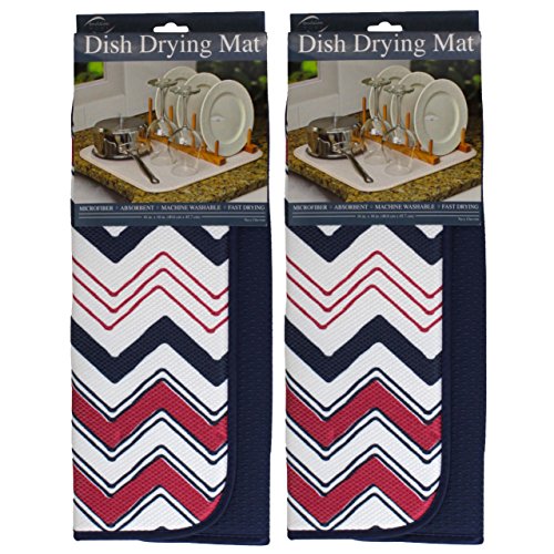 -. Title : Envision Home Microfiber Dish Drying Mat, 16 by 18-Inch, Chevron And Navy - 2 Pack