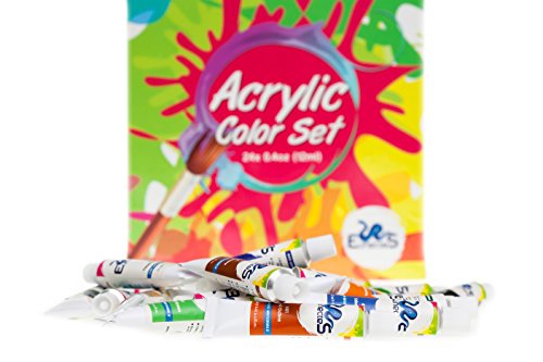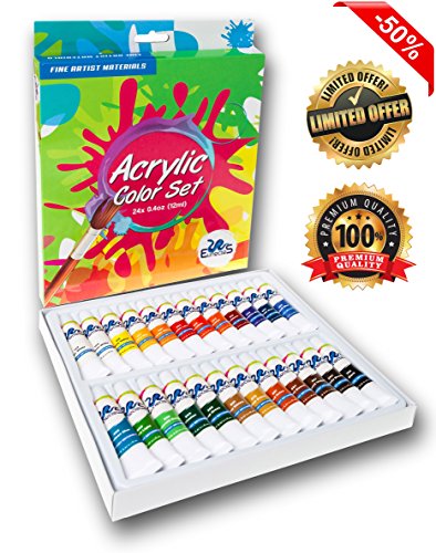 ACRYLIC PAINT SET - Best Artist Kit of 24x12ml - Color Paint - For Kids Adults Beginners and Professionals - Ebook - For Canvas, Wood, Clay, Fabric, Nail Art, Ceramic And Crafts - Money Back Guarantee