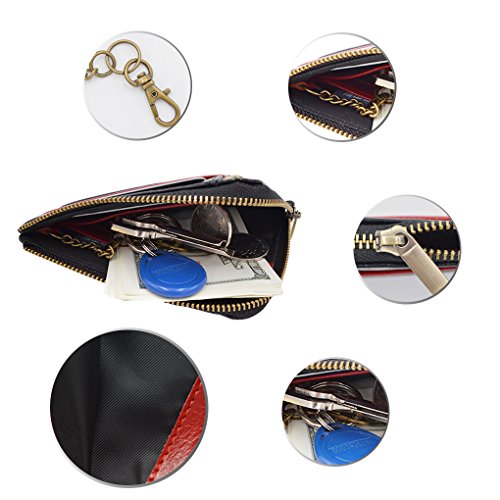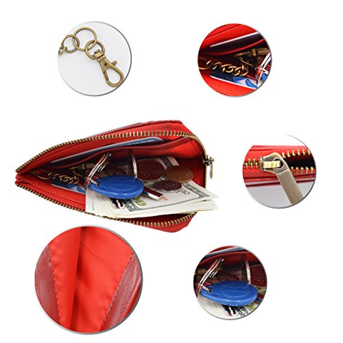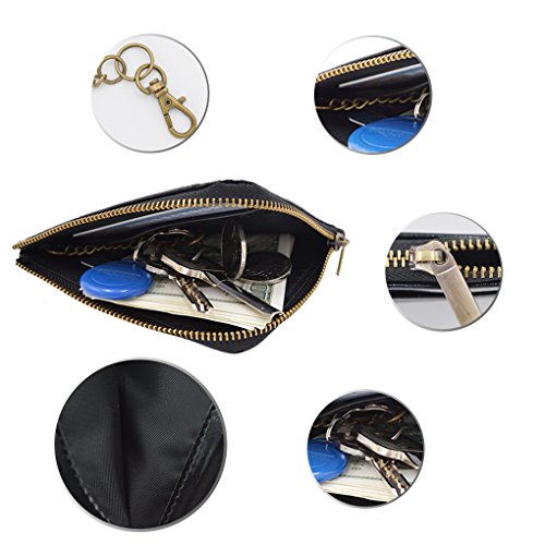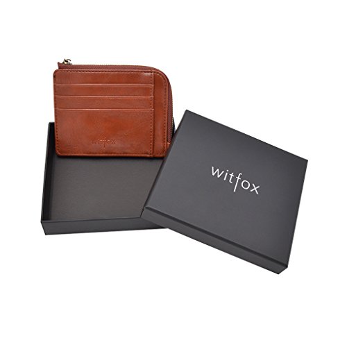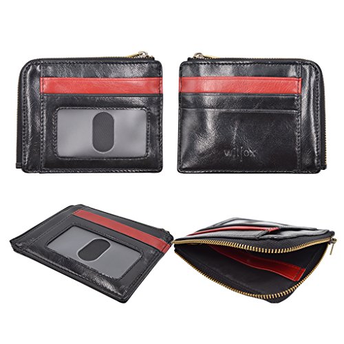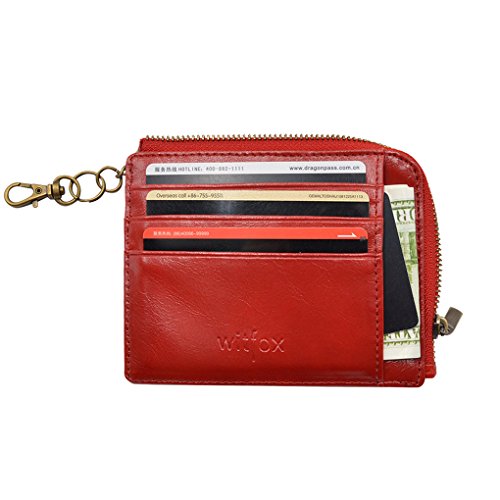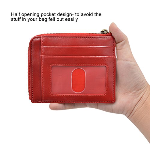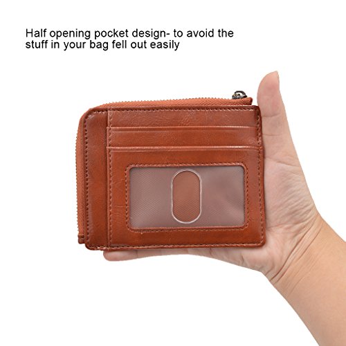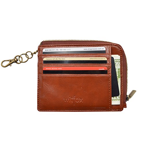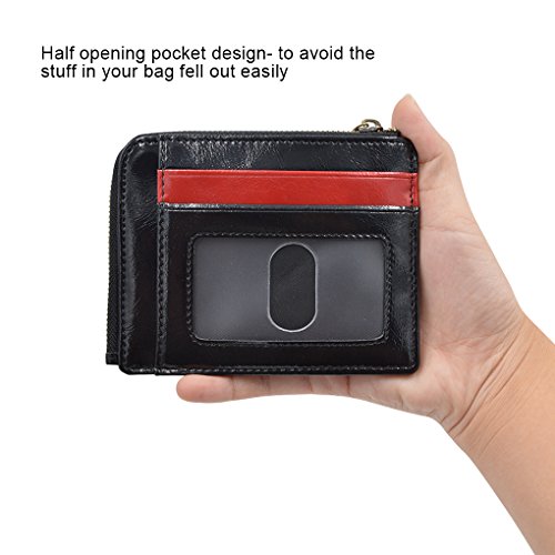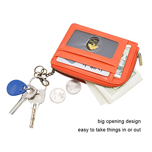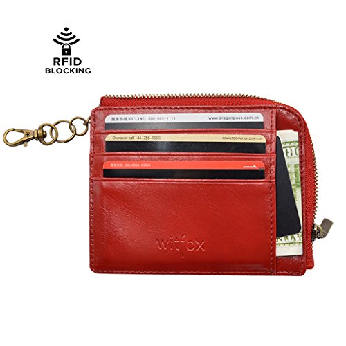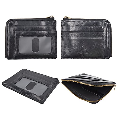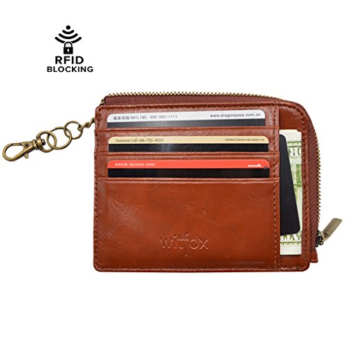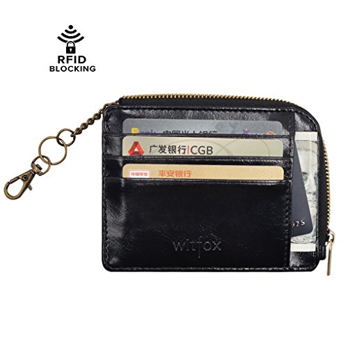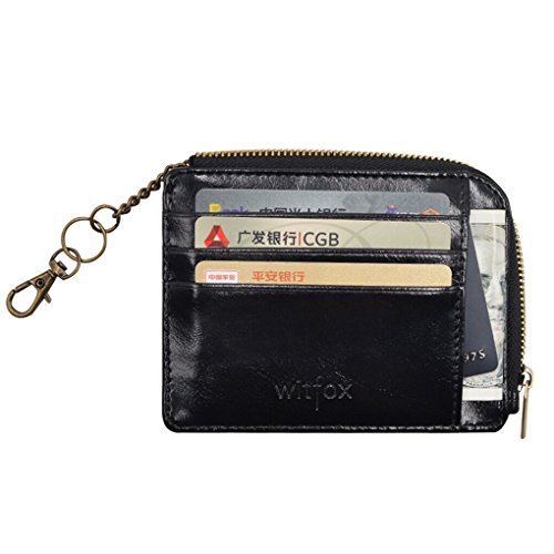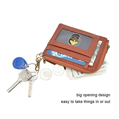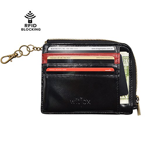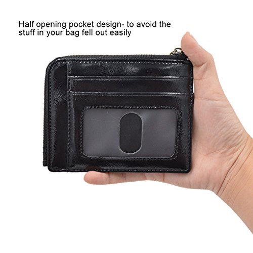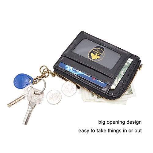 Material: PU Leather Dimensions: 4.7 x 3.7 x 0.3 inches Capacity: 1 Main zipper cash pocket 4 Credit card slots 2 inside card (coin) slot 1 ID window 1 key chain Special function: RFID signal blocking Package:wallet gift box