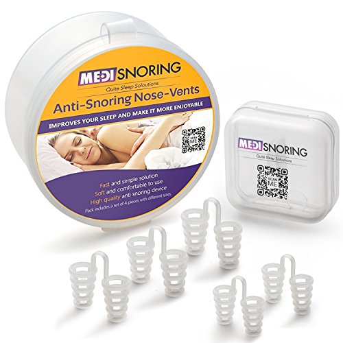 Medisnoring - High Quality Anti Snoring Nose Vents: Advanced Set of 5 Vents in 2 sizes in STORAGE CASE + FREE GIFT EXTRA TRAVEL CASE! Ease...