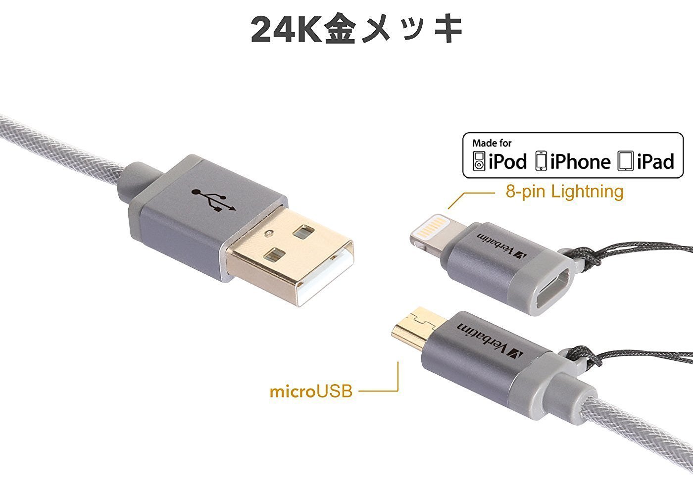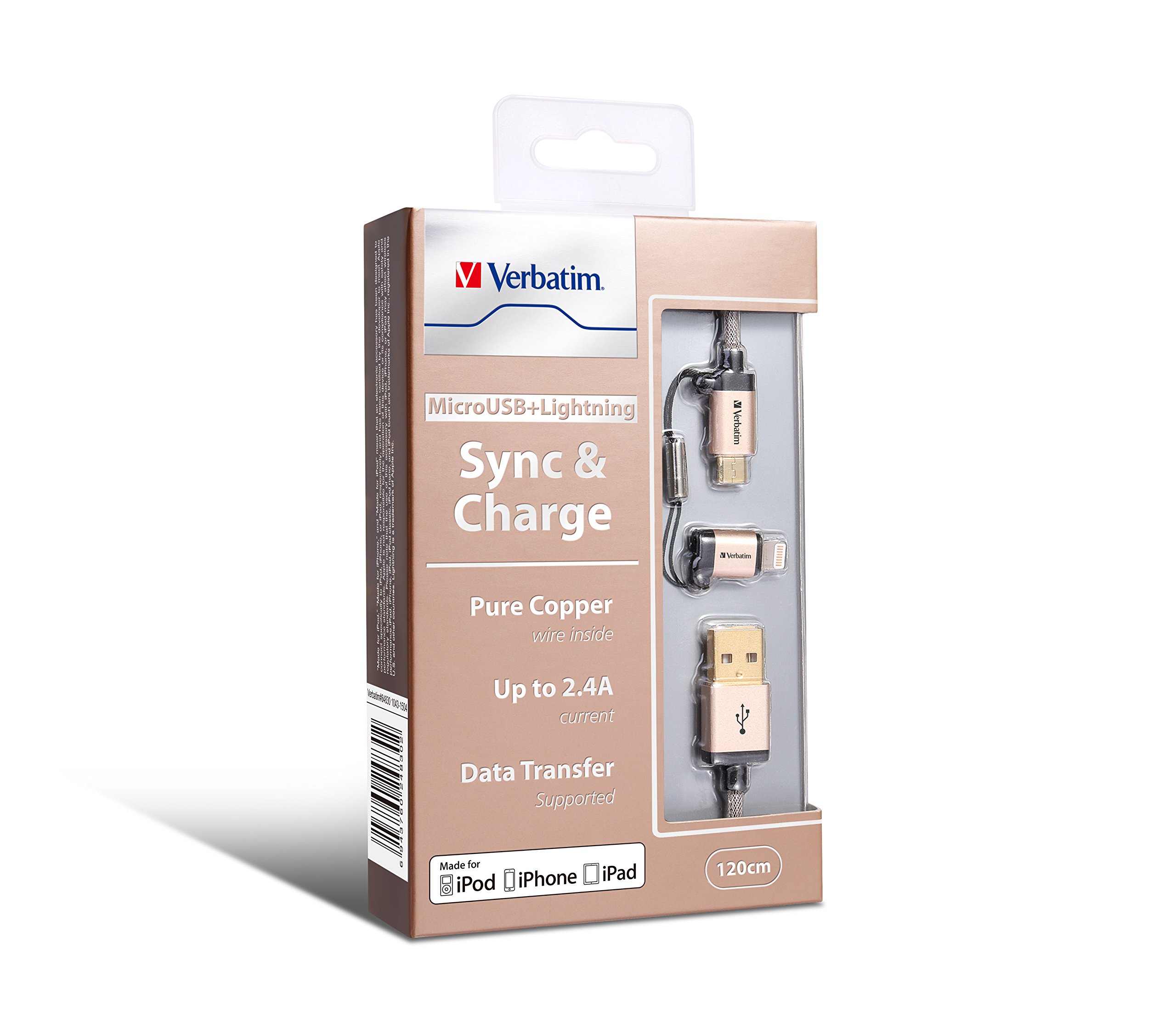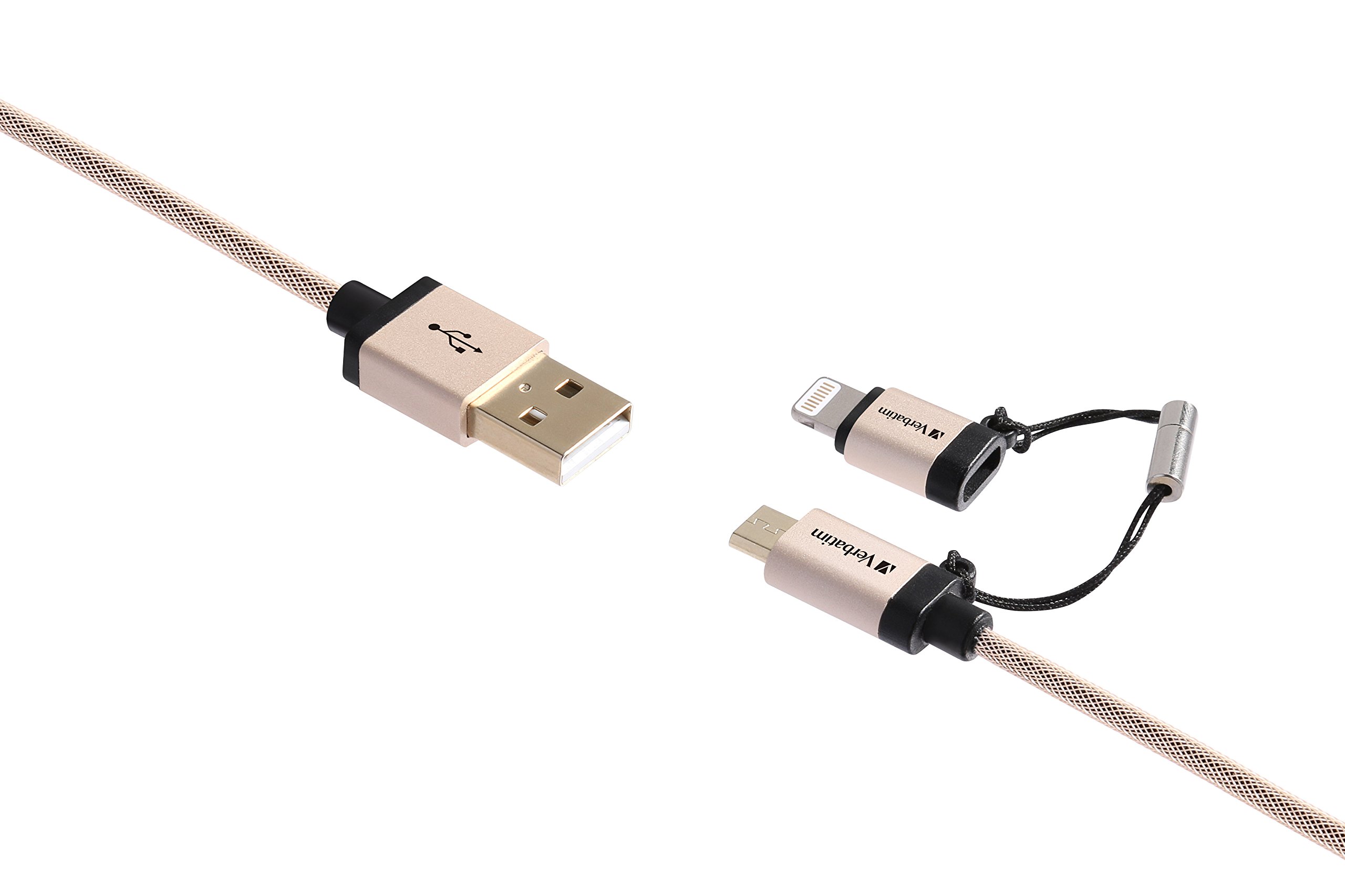 Verbatim Verbatim 120 cm 2 in 1 LIGHTNING conversion adapter attaching microUSB cable both use high endurance nylon made dual connector charge / data transfer cable Apple MFI certified Kindle, Fire tablet / iPhone 7 / iPhone 7s / iPhone 6 / iPhone 6s / ipad air2 / mini3 / AQUOS /