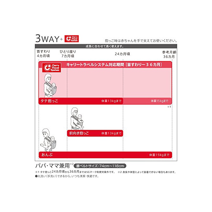 ※사용 기간에 대해서.캐리 트래블 시스템 대응 기간[목 이런 #~36개월].세로 포옹[목 이런 # 4개월경~24개월(체중13kg)].긍정적(정면) 포옹[다만 안정도7개월경~24개월경(체중13kg)].어부바[목 이런 # 4개월경~36개월경(체중15㎏)]