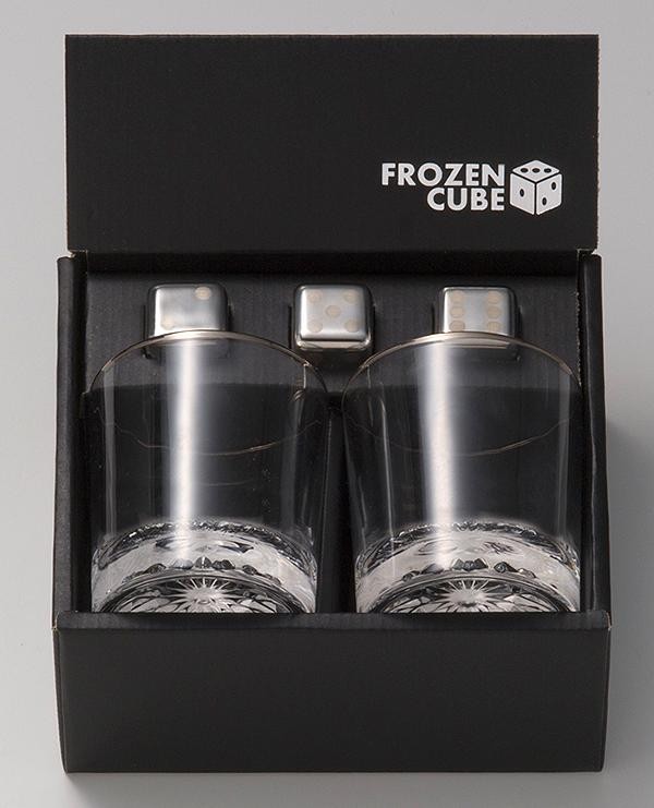 サイコロデザインのフローズンキューブとシンプルなロックグラスがスタイリッシュ。ギフトにもおすすめです。 |