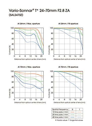 High-performance Carl Zeiss large-aperture zoom. The SAL-2470Z Carl Zeiss Vario-Sonnar f2.8 24-70mm Zoom Lens is a brilliant all-around performer -- with SSM (Super Sonic wave Motor) design for fast, silent auto-focus, pro-quality Carl Zeiss T coated optics to reduce lens flare, and 17-element design with two aspherical and two ED glass lens elements to minimize distortion and virtually eliminate chromatic aberration. It benefits from the Super SteadyShot image stabilization built into every Sony α system DSLR -- and its wide-angle to medium telephoto range in compact, lightweight design is ideal for a wide range of shooting applications (35mm equivalent: 36-105mm).Feature