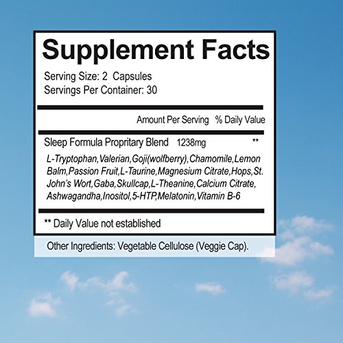 -. Binding : Health and Beauty -. Brand : Salt Lake Supplements -. EAN : 0720189838729 -. Feature : GET BETTER QUALITY SLEEP AND REST - Natural sleep aid is a formulation of 19 vitamins, minerals and herb extracts that are combined to help you drift off naturally into sleep and have a tranquil night / RELAXES & CALMS YOU BEFORE BED - Valerian is a hardy plant whose roots are known to naturally aid in increasing the amount of GABA or gamma aminobutryic acid which helps regulate the action of nerve cells and has a calming effect. Its root is a calmative agent, helping the body relax. After a stressful day, Natural sleep aid will help empty your head of all the worries, and still wake up alert the next day. / SLEEP WELL, WAKE REFRESHED - Contains Melatonin that helps maintain our sleep and wake cycle by causing drowsiness and lowers body temperature, working with the central nervous system to sync our biological clock and help you get the right amount of sleep and be fully rested to take on a productive day ahead of you / Each easy to open bottle contains 60 capsules which is a 30-day supply / NATURAL, SAFE & NON-HABIT FORMING INGREDIENTS - 100% All natural and Vegan friendly, no animal byproducts and made in Salt Lake City, Utah in a GMP factory with a 30-day money back guarantee -. IsAdultProduct : 0 -. Label : Salt Lake Supplements -. LegalDisclaimer : *These statements have not been evaluated by the Food and Drug Administration. This product is not intended to diagnose, treat, cure or prevent any disease. -. Manufacturer : Salt Lake Supplements -. PackageQuantity : 60 -. ProductGroup : Health and Beauty -. ProductTypeName : HEALTH_PERSONAL_CARE -. Publisher : Salt Lake Supplements -. Size : Sleep Aid -. Studio : Salt Lake Supplements -. Title : Natural Sleep Aid Is An All-Natural Sleep Formula That Combines Melatonin, Valerian Root And Non-Addictive Extracts Into A 100% Safe Sleeping Pill That Will Allow You To Get a Full Night's Rest -. UPC : 720189838729
