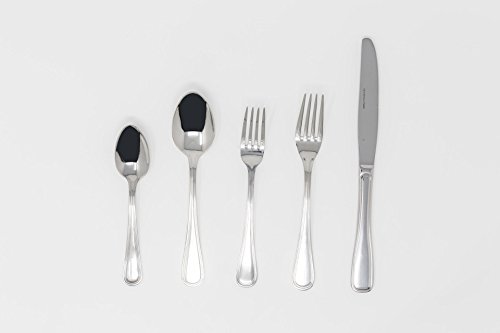 . Service For Four 20 Piece Total . Set Includes Teaspoon, Dinner Spoon, Dinner Fork, Salad Fork, Dinner Knife . 18/8 Stainless Steel With Mirror Finish . Commercial Restaurant Grade . Extra Heavy Weight 3.0 mm Thickness