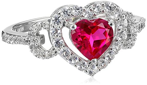 Sterling Silver Created Ruby Round Created White Sapphire Heart Ring, Size 7
