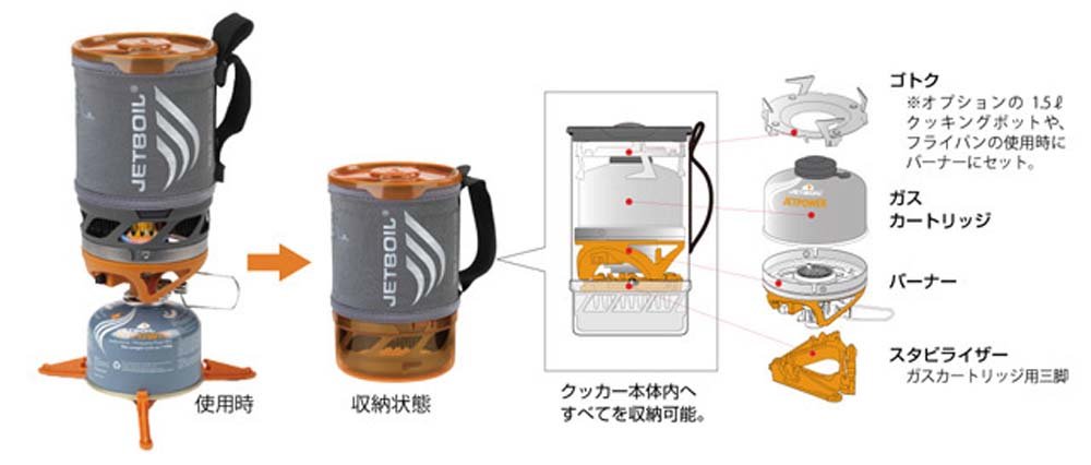 Stabilizers attached to cartridges to prevent falling and Gotok corresponding to other cookers are included.