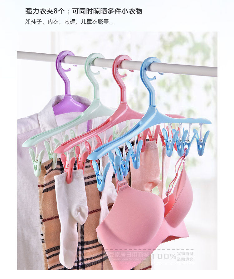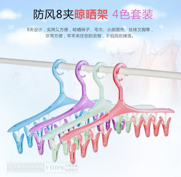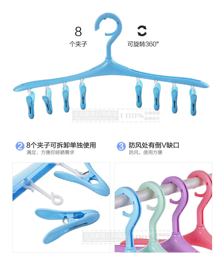 8 folder design, practical and convenient, drying socks, towels, baby bibs, stockings bra, etc., very convenient, firmly clamp your clothes, not afraid of the wind falling.