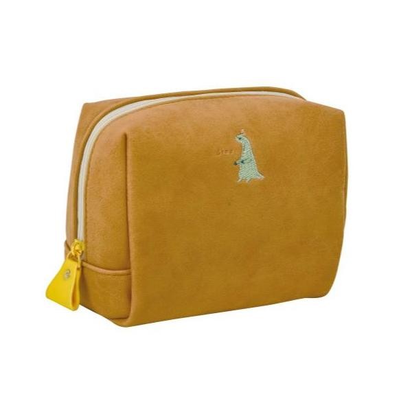 ゆるくて楽しい雰囲気の、ユニークなキャラクターの刺繍がかわいいポーチです。頭のパーティー帽子をイメージした、三角のチャームがアクセントになっています。四角い形と幅広のマチでたっぷり大容量なので、メイクポーチなどに使っても取り出しやすくおすすめです。 |
