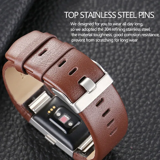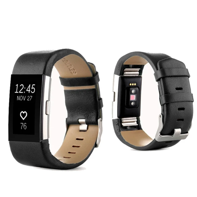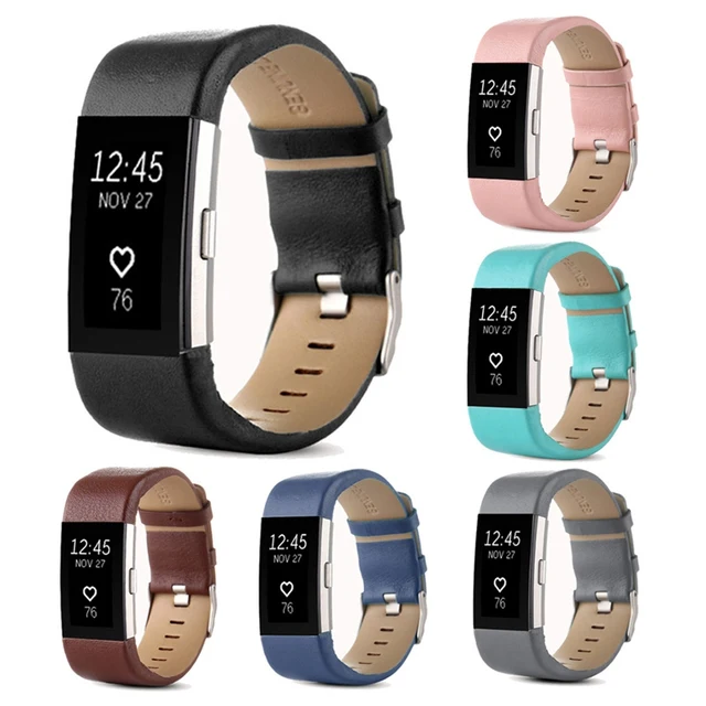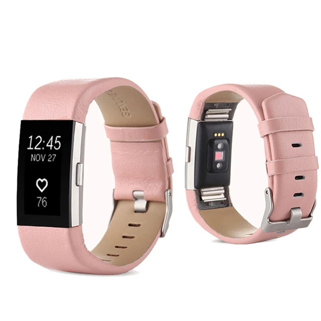| [해외]고급 정품 가죽 시계 밴드 팔찌 교체 스트랩 핏 비트 충전 2 팔찌 벨트 금속 핀 버클 |