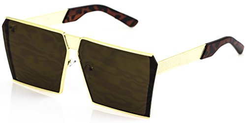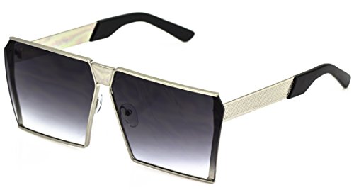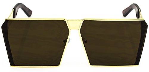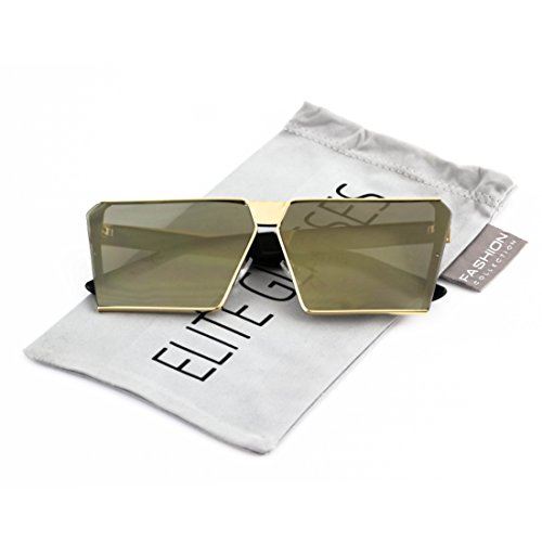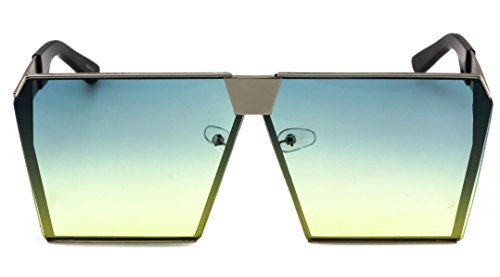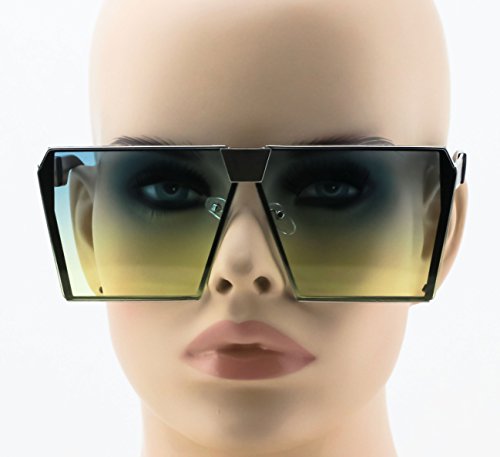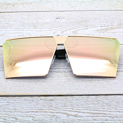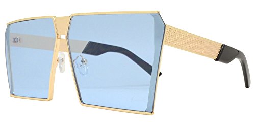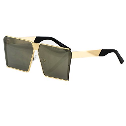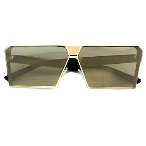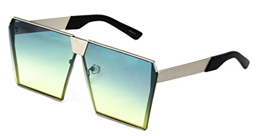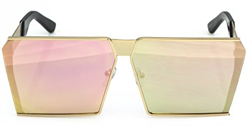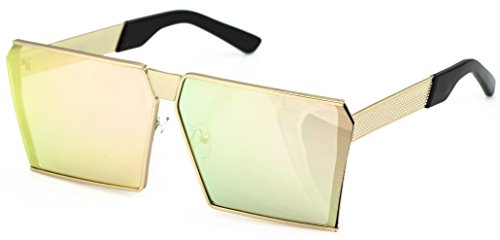 Elite Oversized Flat Top Metal Square Sleek Retro Mirrored Oceanic Lens Sunglasses