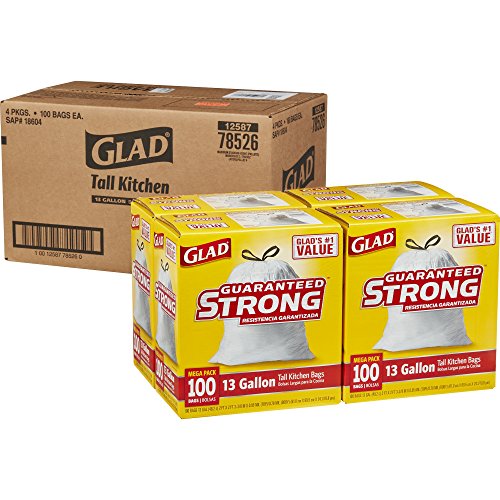Glad Tall Kitchen Drawstring Trash Bags - 13 Gallon - 100 Count - 4 Boxes/Case